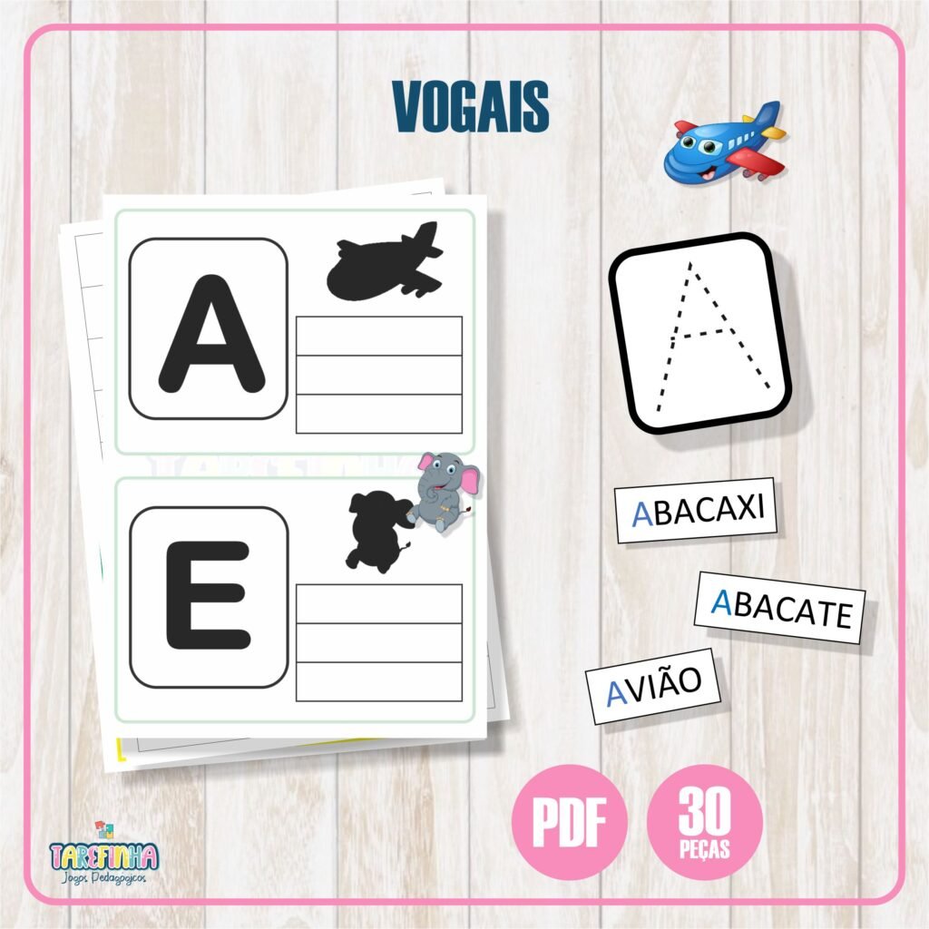 O jogo das vogais tem como objetivo através da ludicidade a memorização das vogais; A identificação das letras iniciais e finais das palavras.