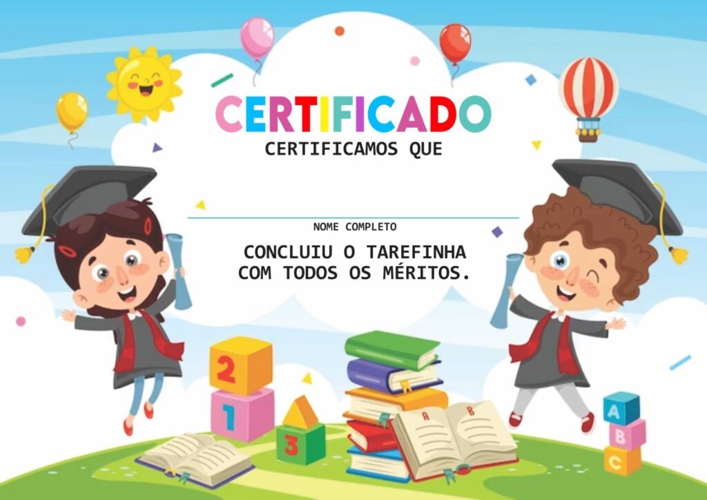 Ao final das atividades você pode comemorar a conquista do seu pequeno com um lindo certificado personalizado!